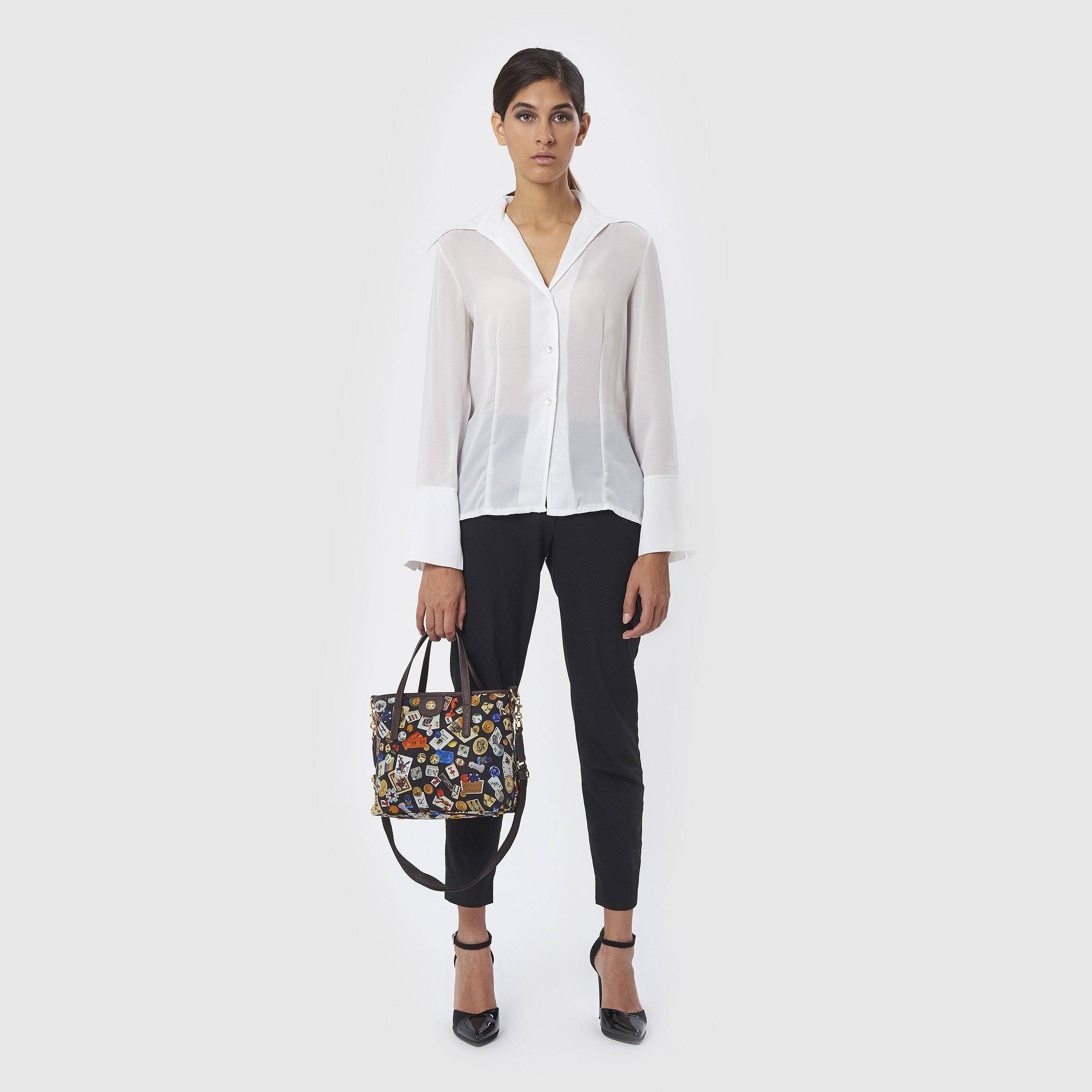 Sanremo Borsa shopping medium in Nylon with Multicolor Gambling Design Black/Cocoa