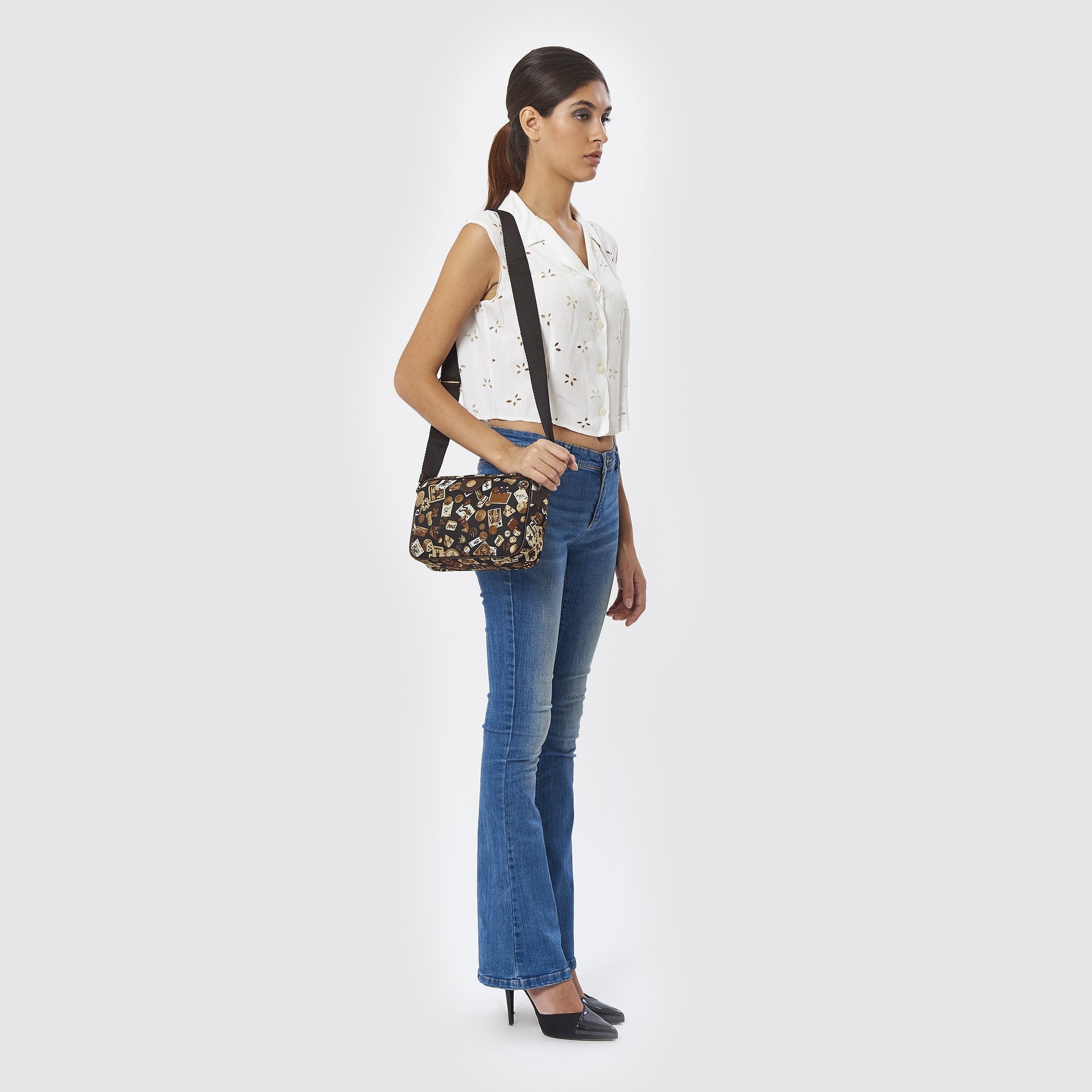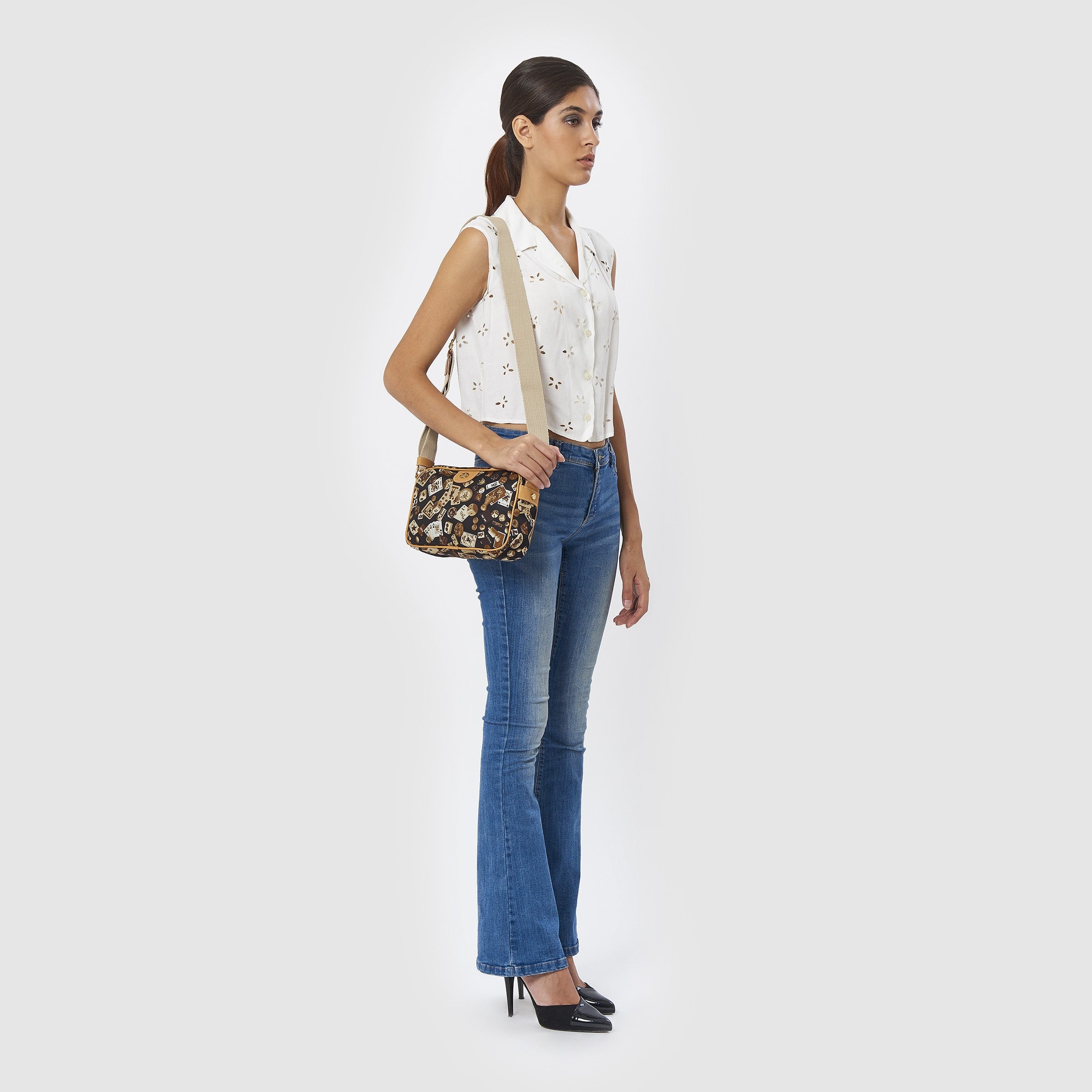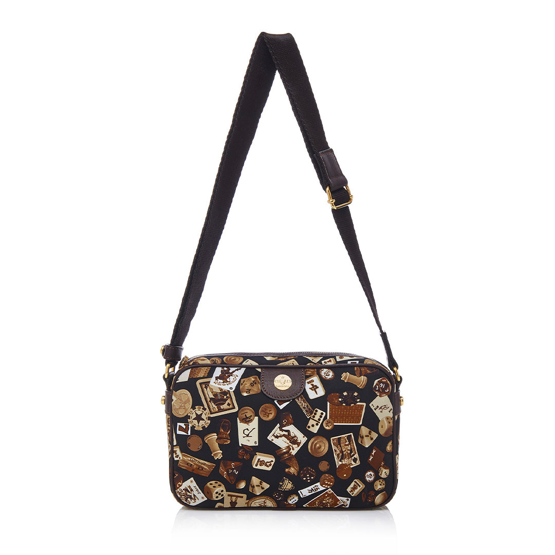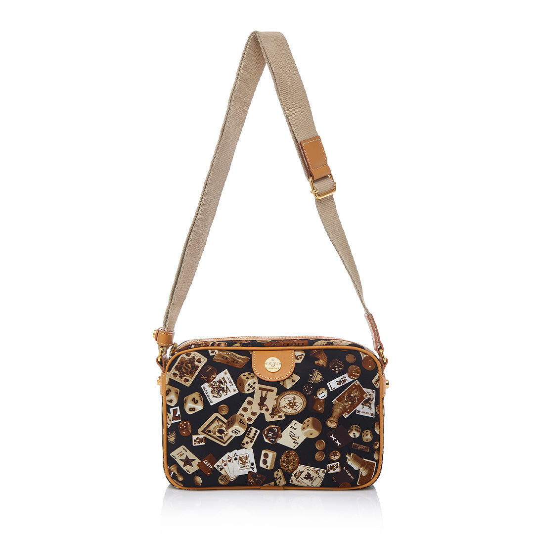 Seoul Nylon Shoulder Bag with Multicolor Gambling Design Black/Cocoa