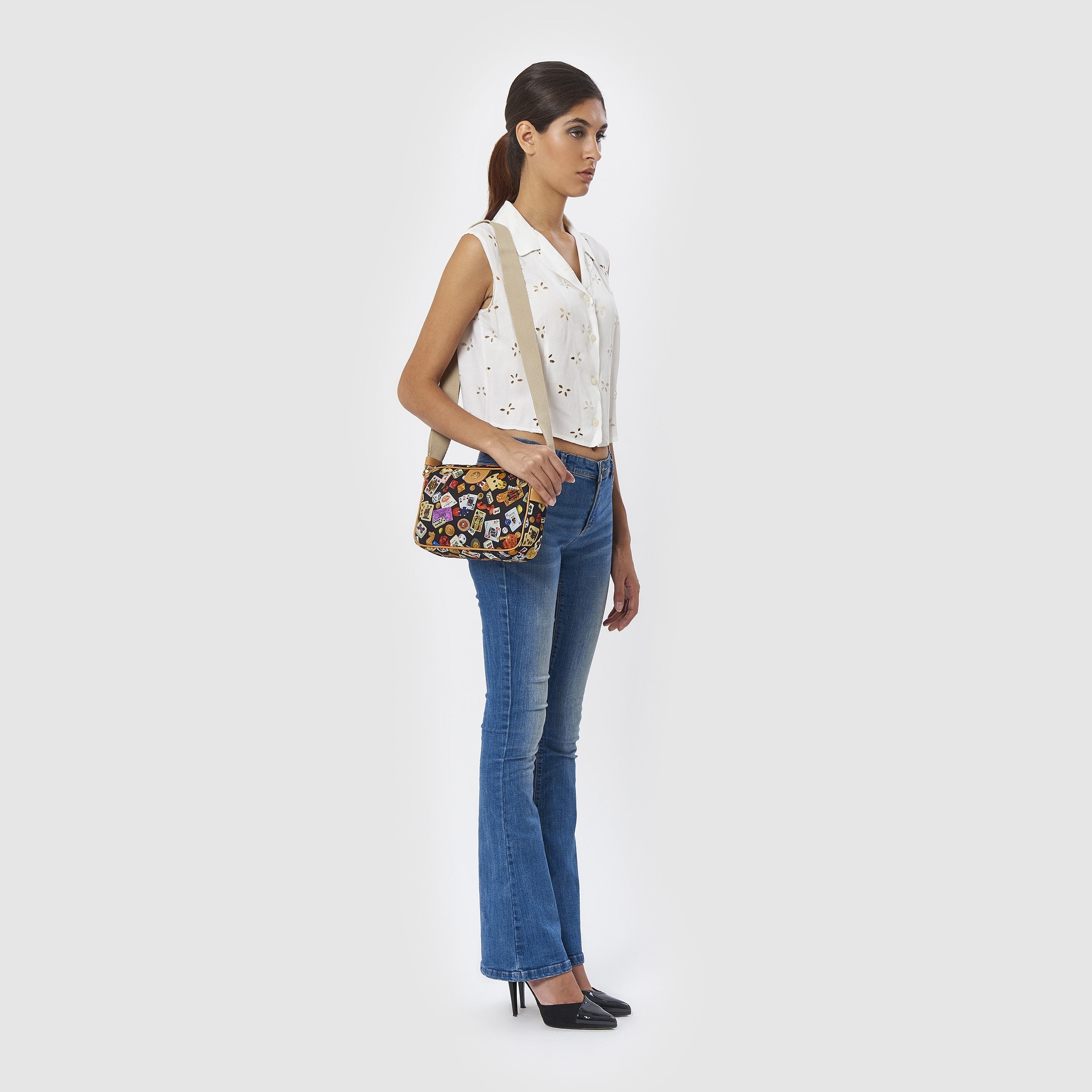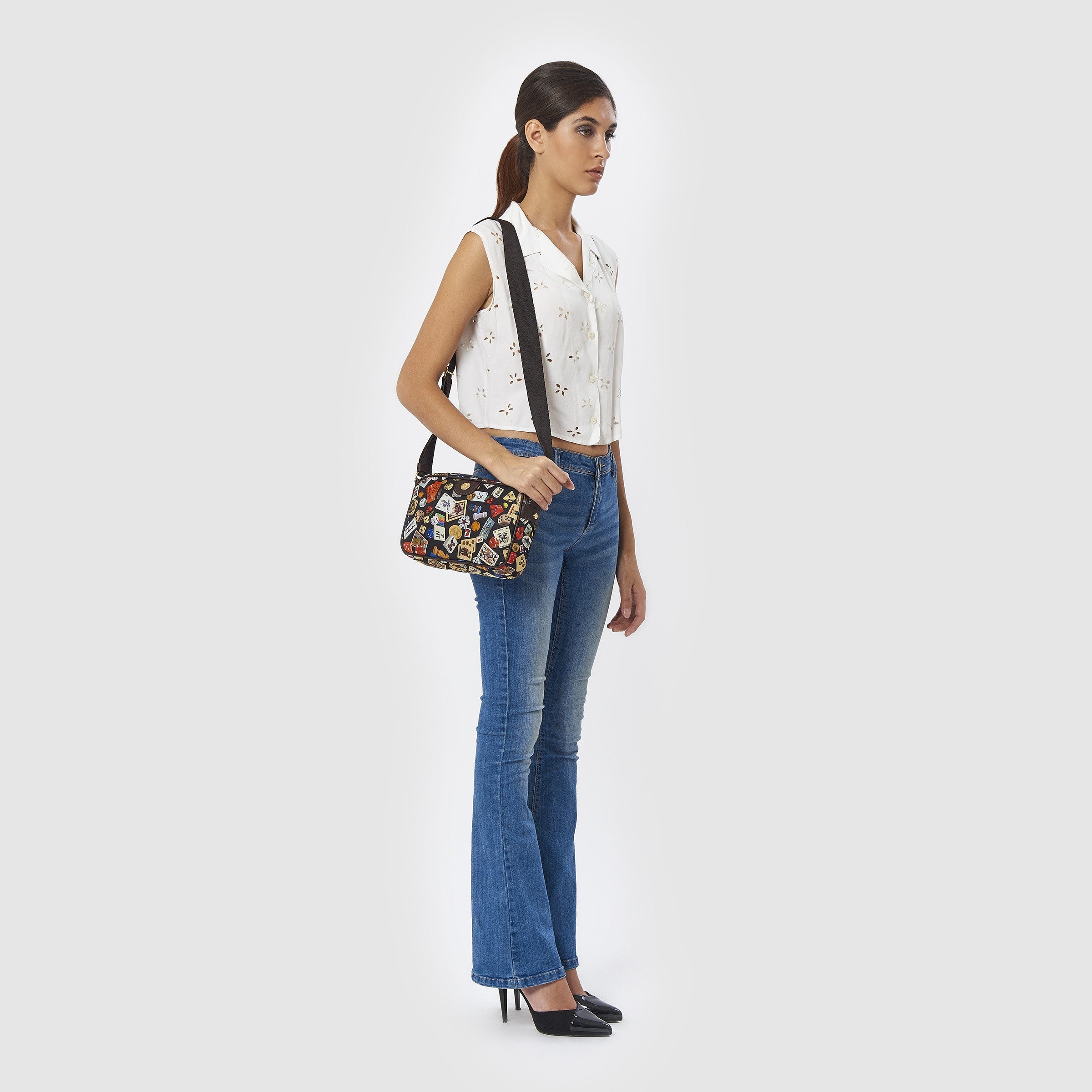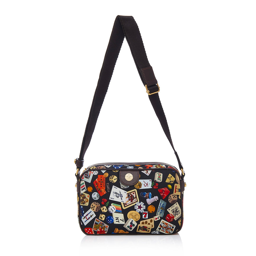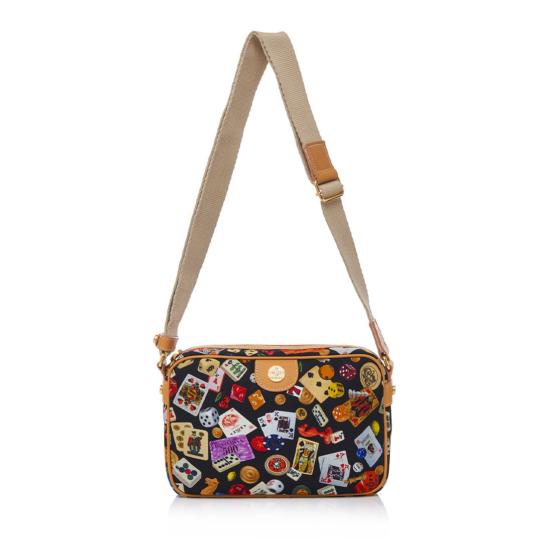 Seoul Nylon Shoulder Bag with Multicolor Gambling Design Black/Biscuit