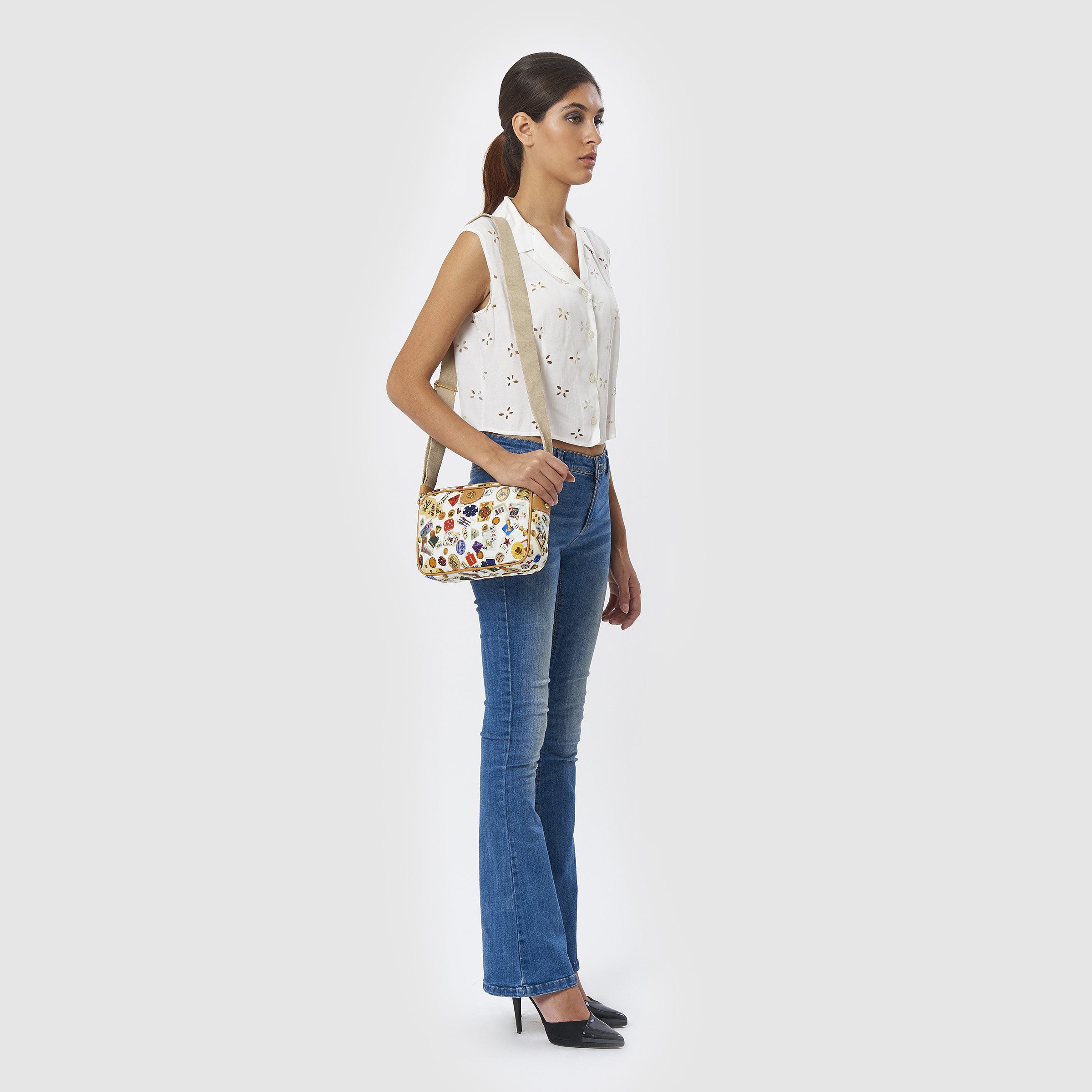 Seoul Nylon Shoulder Bag with Multicolor Gambling Design White/Biscuit