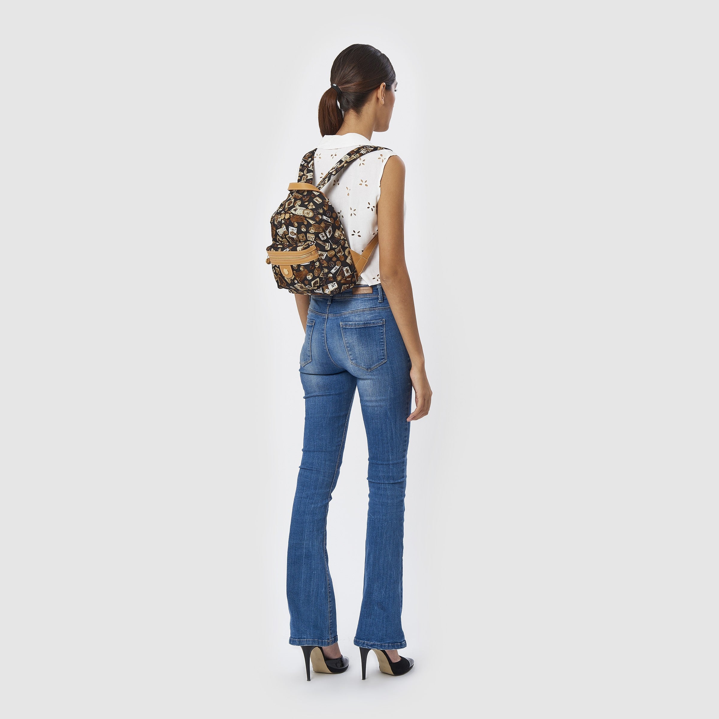 Melbourne Small Nylon Backpack with Classic Gambling Design Brown/Biscuit
