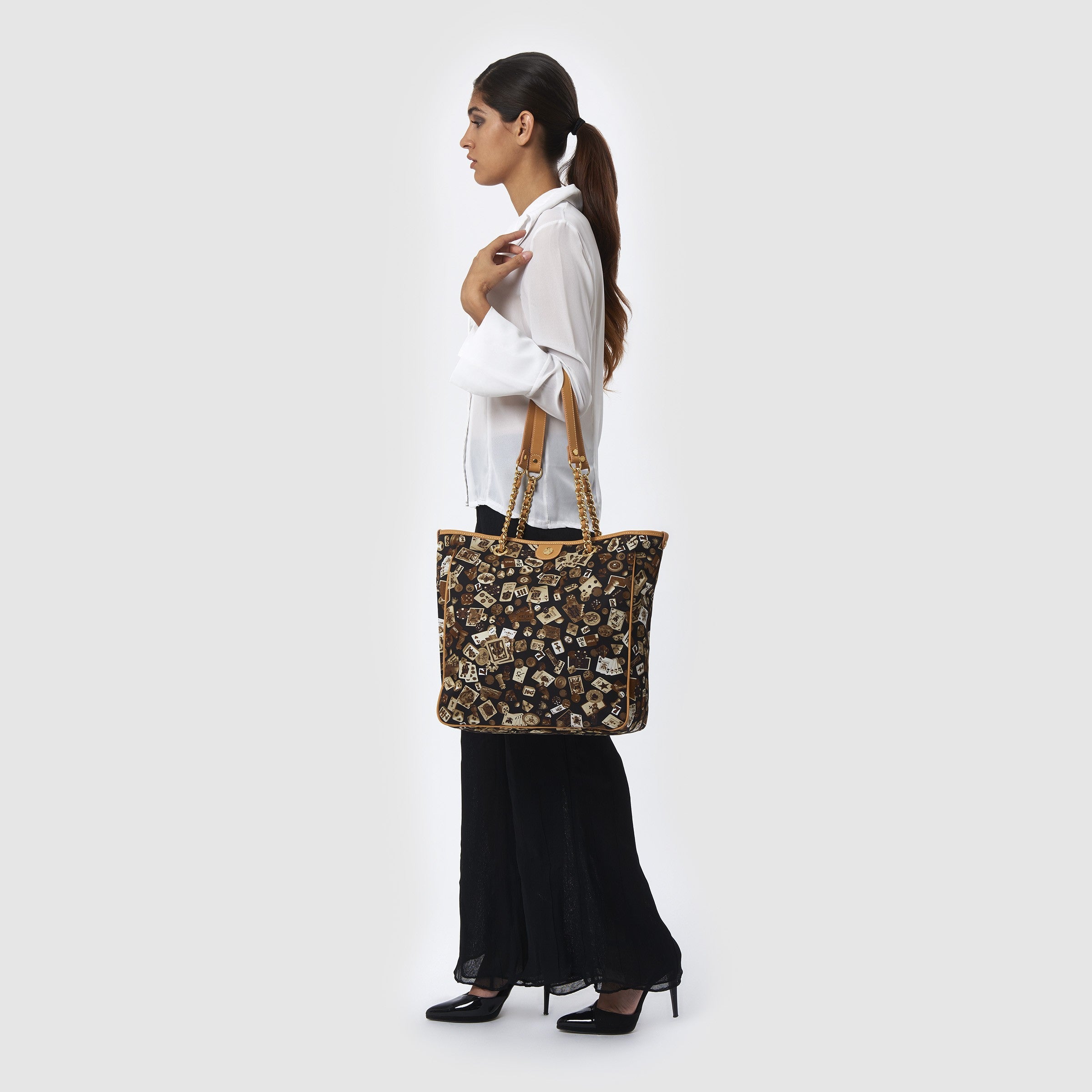 Miami Borsa shopping medium with nylon chains with Classic Gambling Design Brown/Biscuit