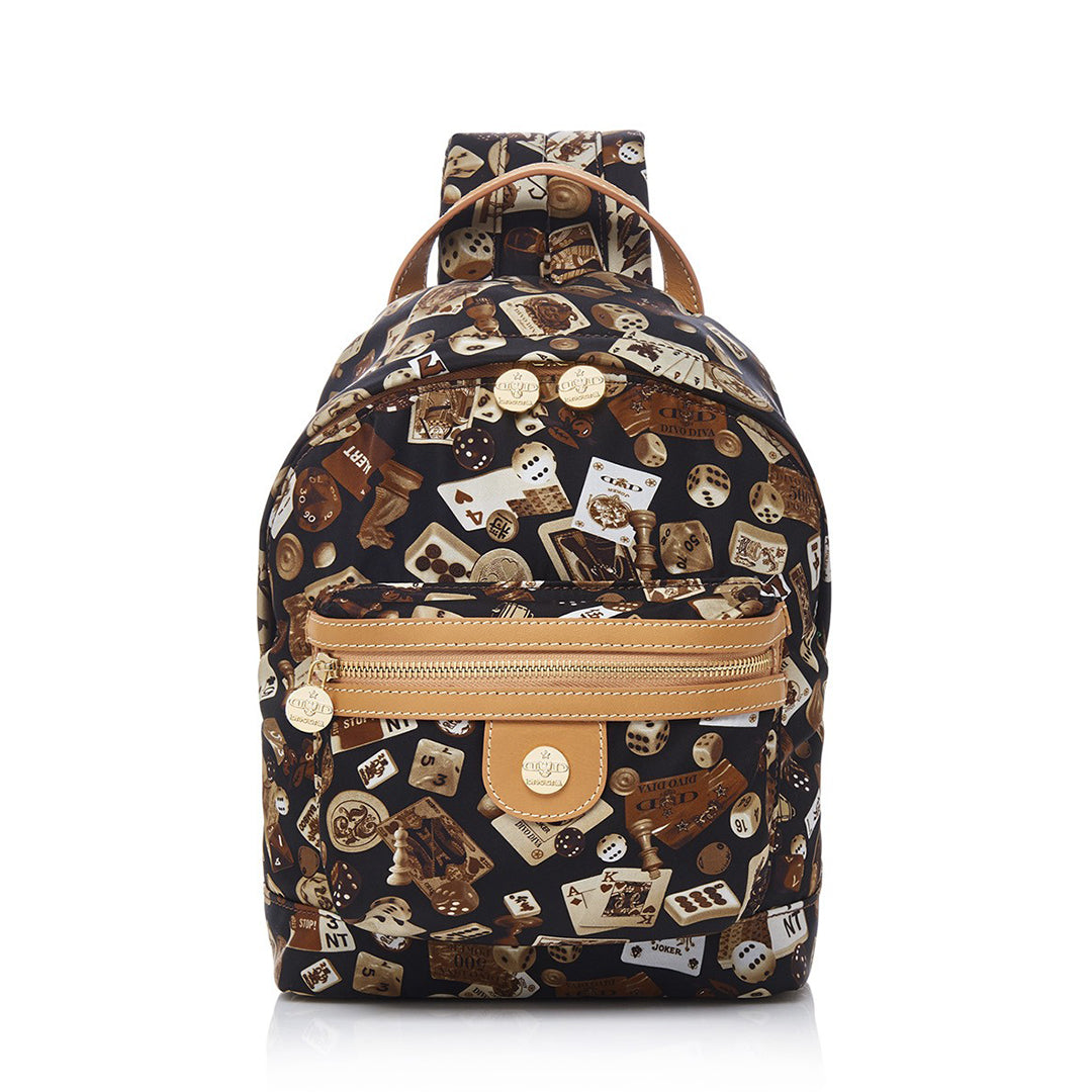 Melbourne Small Nylon Backpack with Multicolor Gambling Design Black/Cookie
