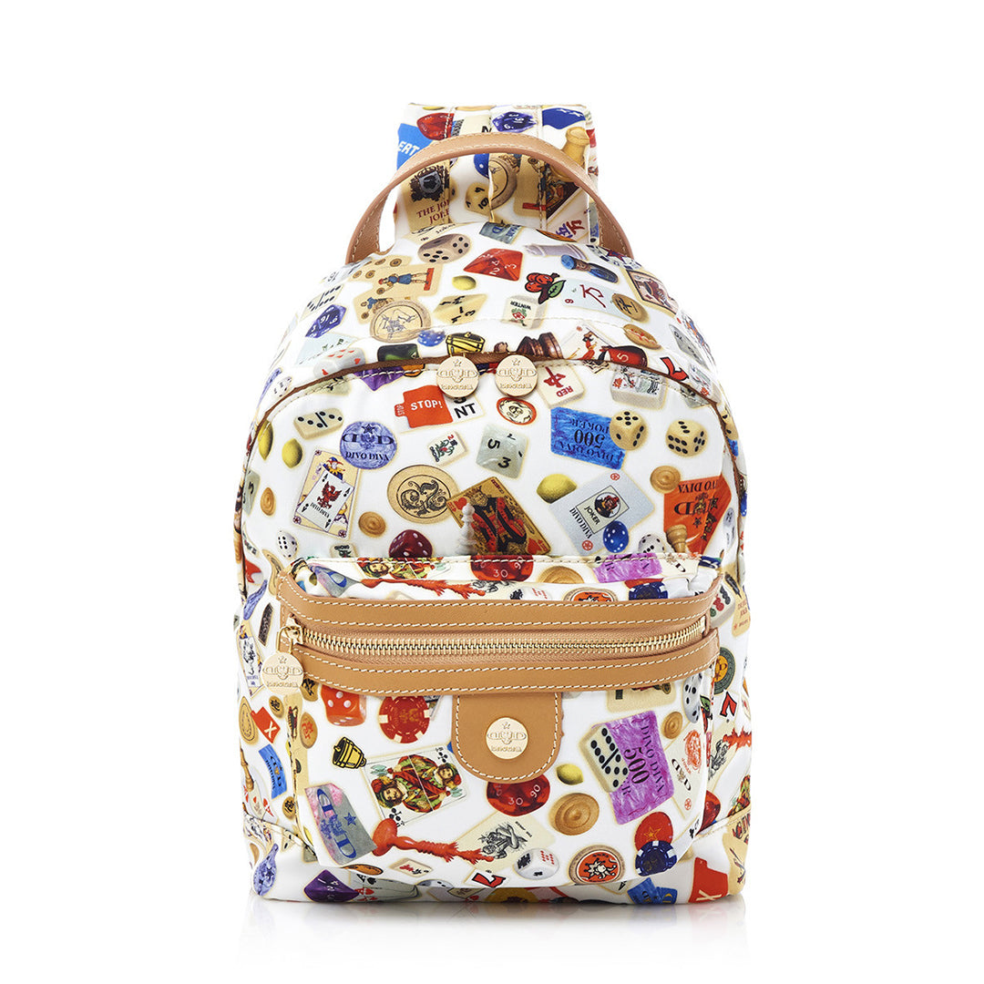 Melbourne Small Nylon Backpack with Multicolor Gambling Design White/Biscuit