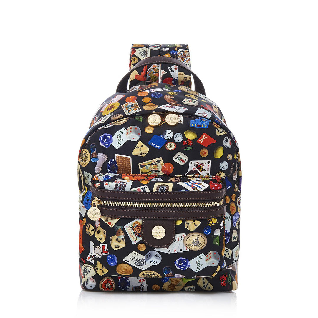 Melbourne Small Nylon Backpack with Multicolor Gambling Design Black/Cocoa