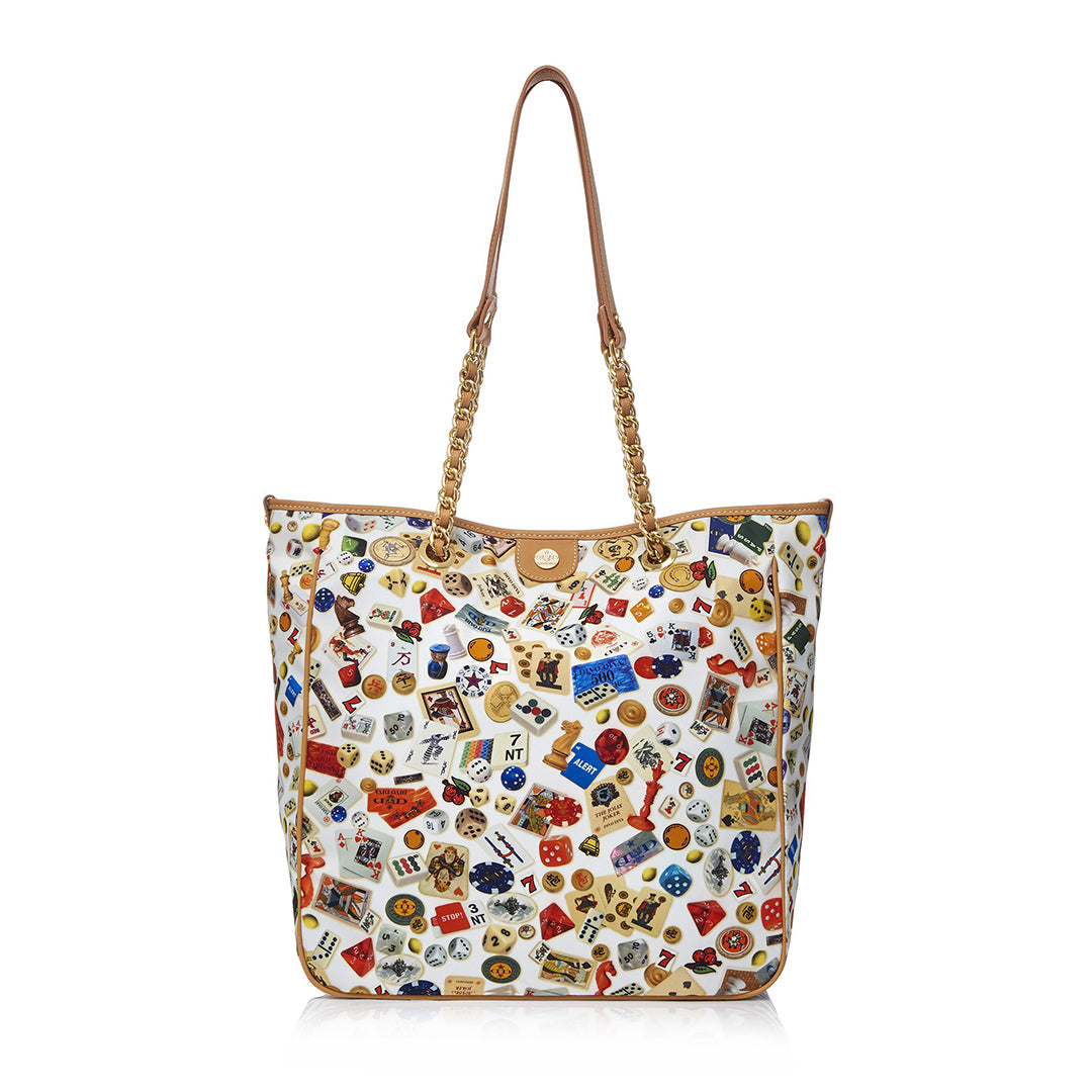 Miami Bolsa shopping medium with Nylon chains with Multicolor Gambling Design White/Biscuit