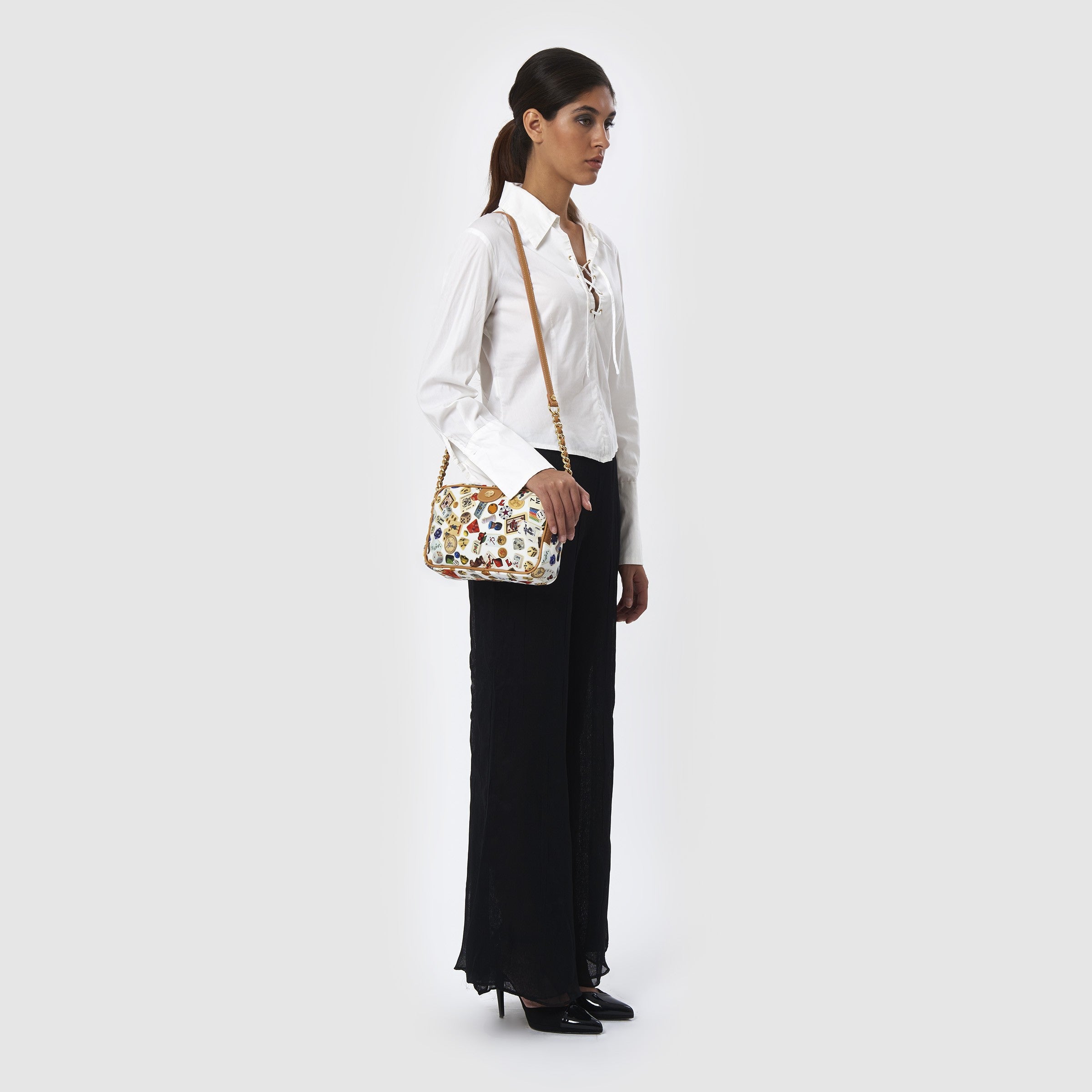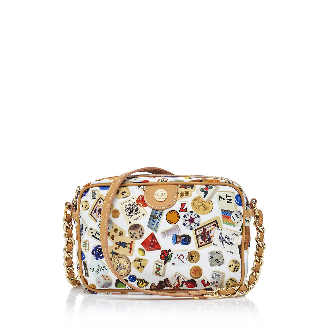 Las Vegas Tracolla con catene in Nylon con Disegno Gambling Multicolor Bianco/Biscotto