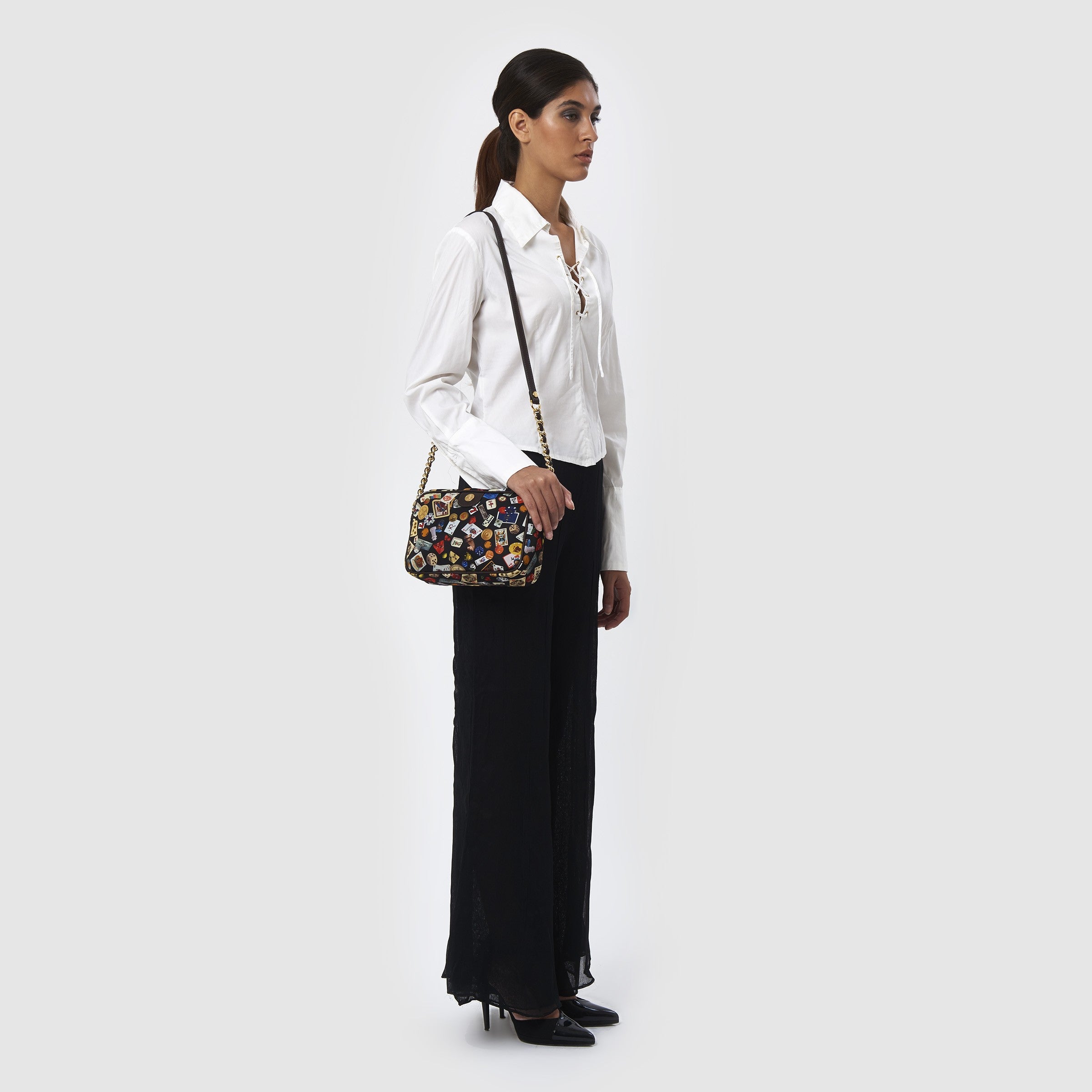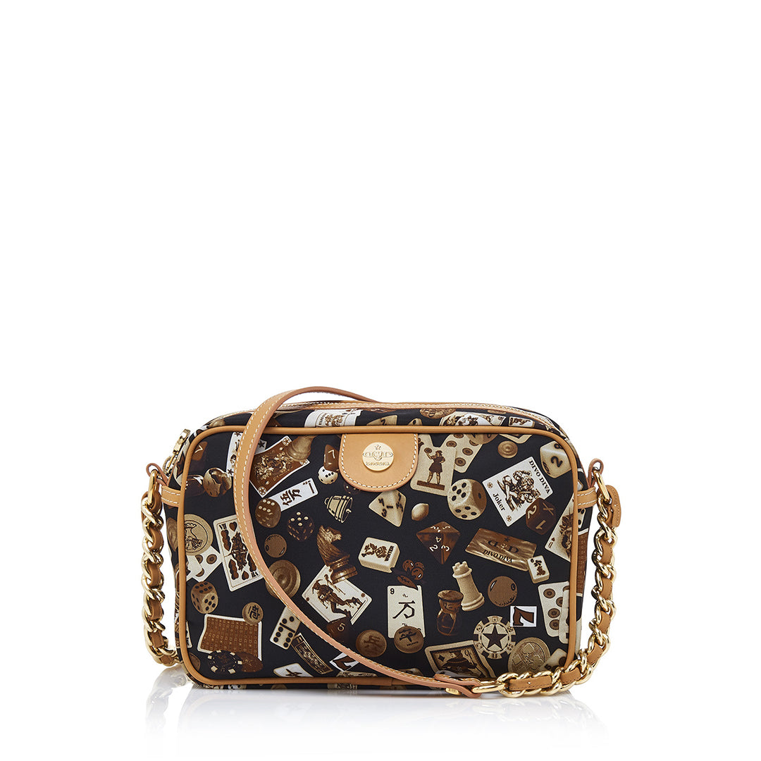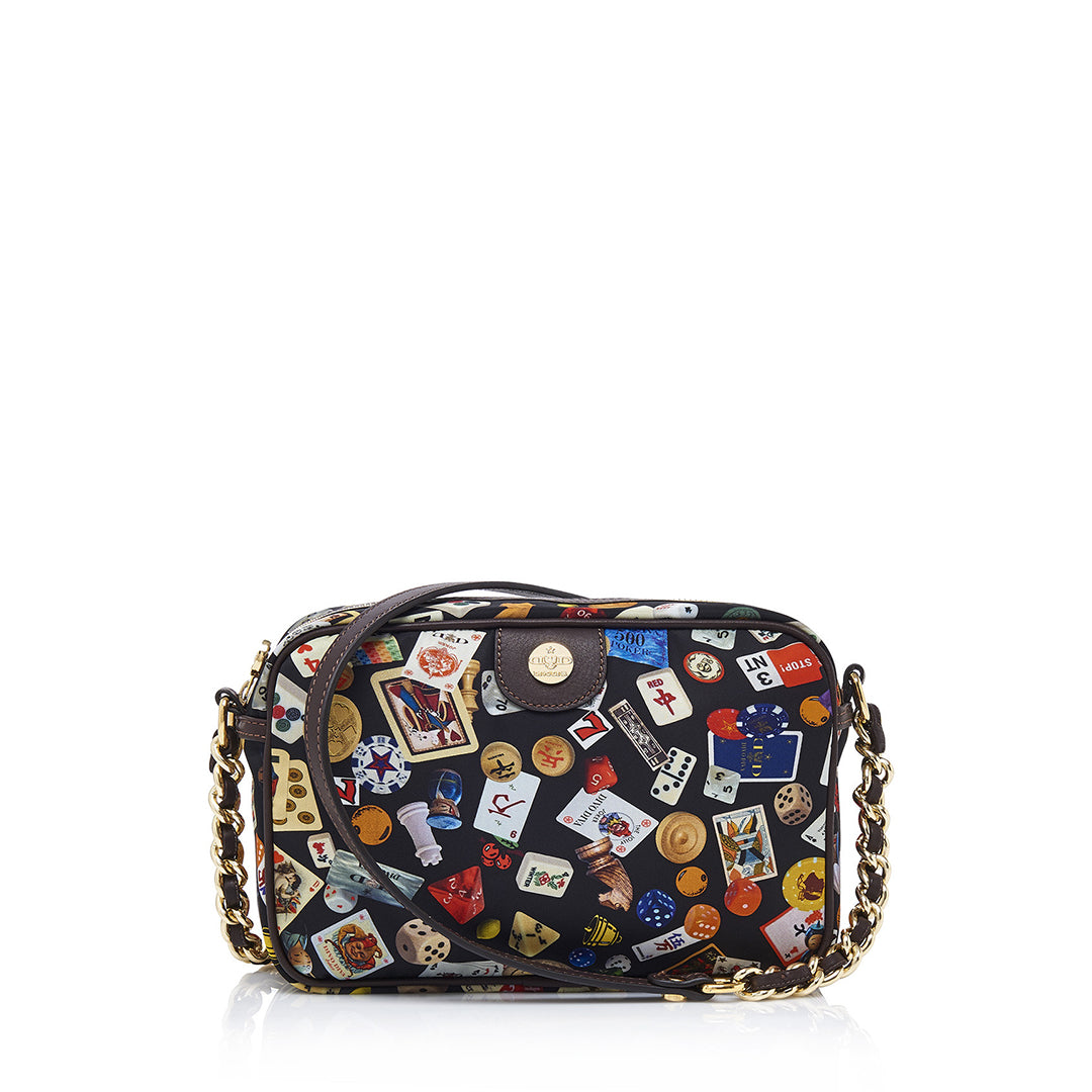 Las Vegas Tracolla con catene in Nylon con Disegno Gambling Multicolor Nero/Cacao