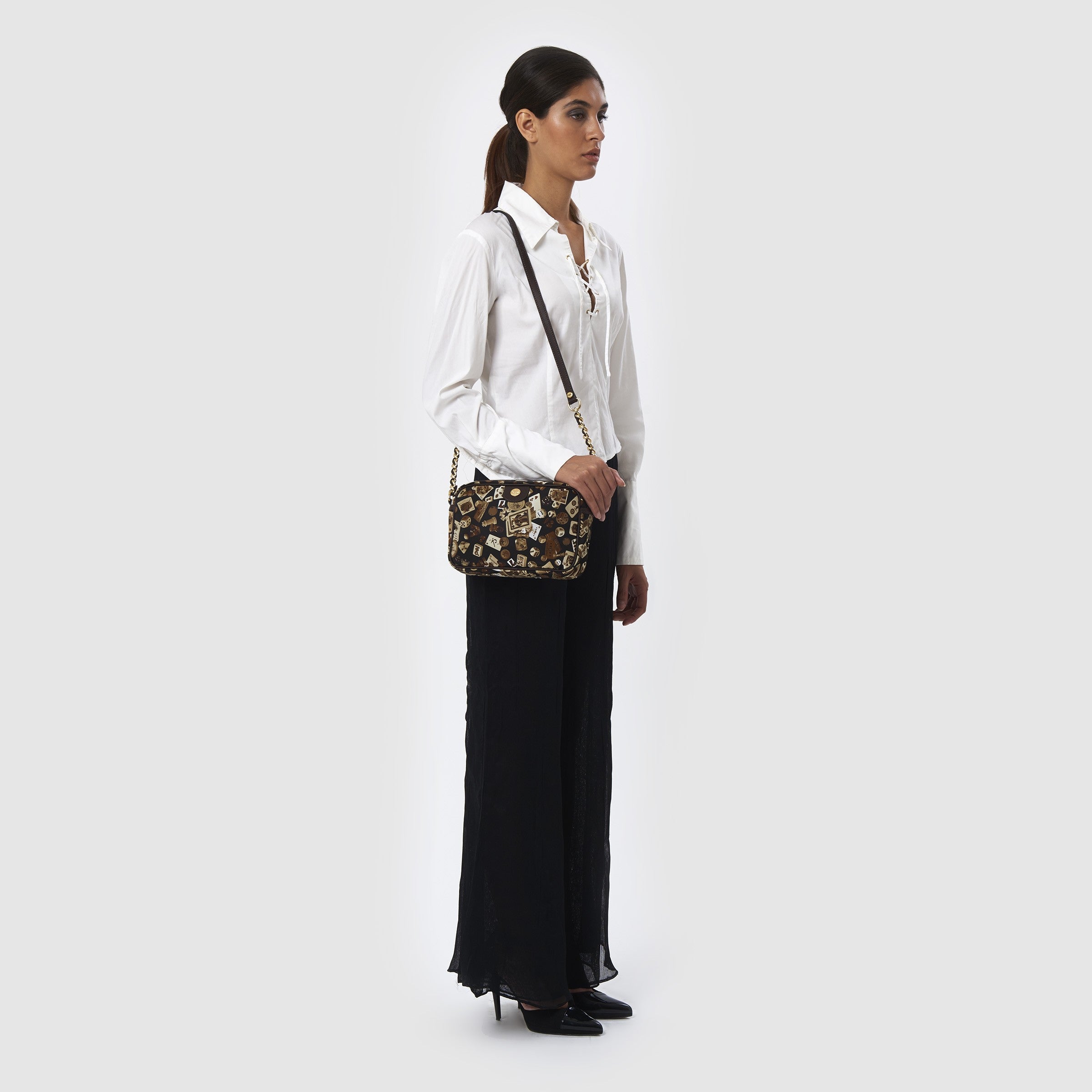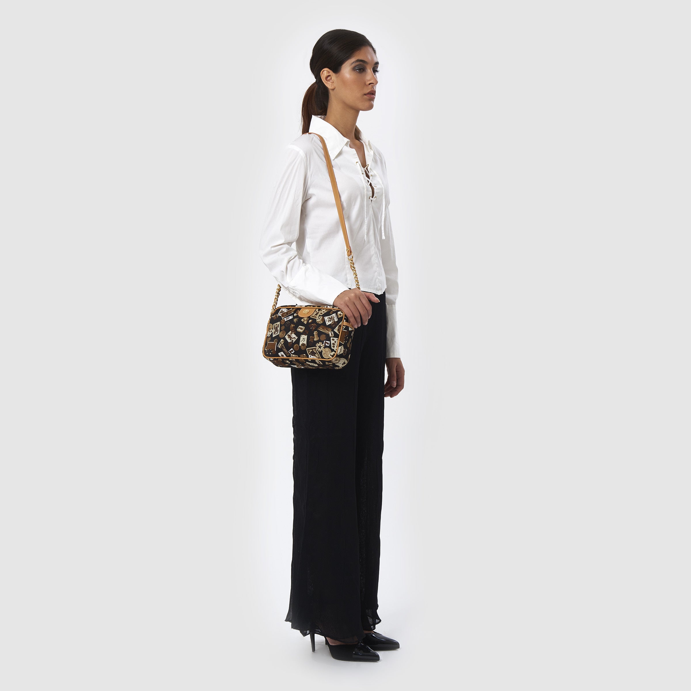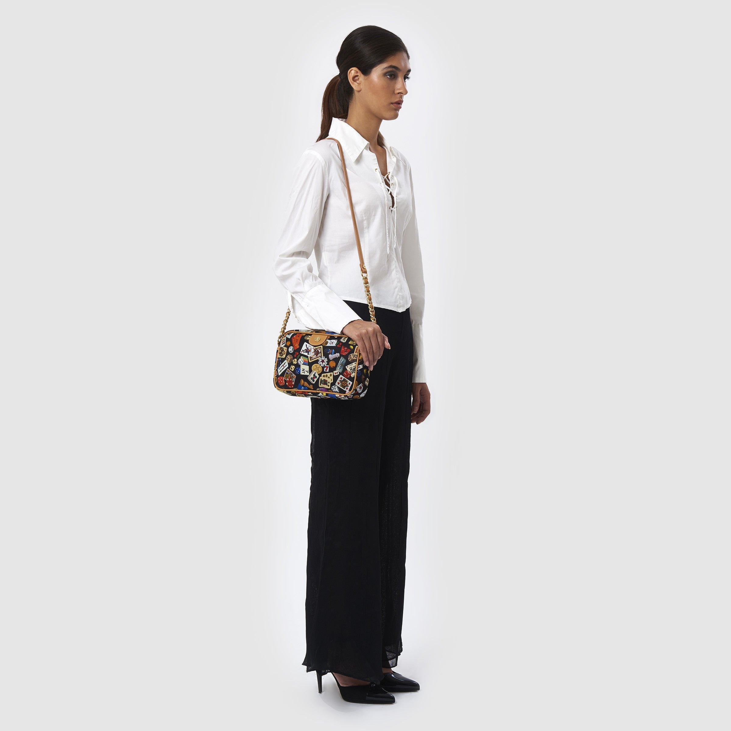 Las Vegas Tracolla con catene in Nylon con Disegno Gambling Multicolor Nero/Cacao