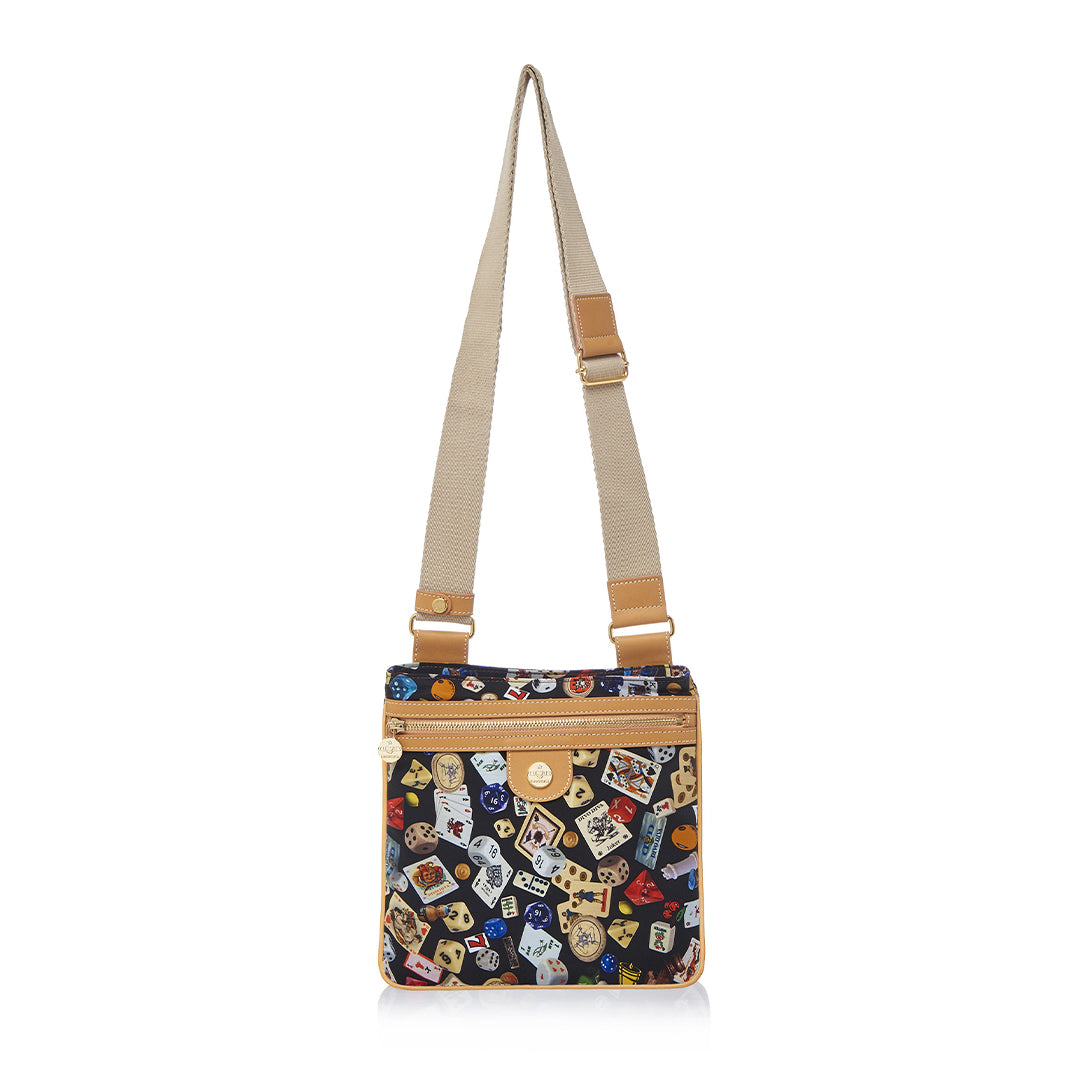 Madrid Tracolla piatta in Nylon con Disegno Gambling Multicolor Nero/Biscotto