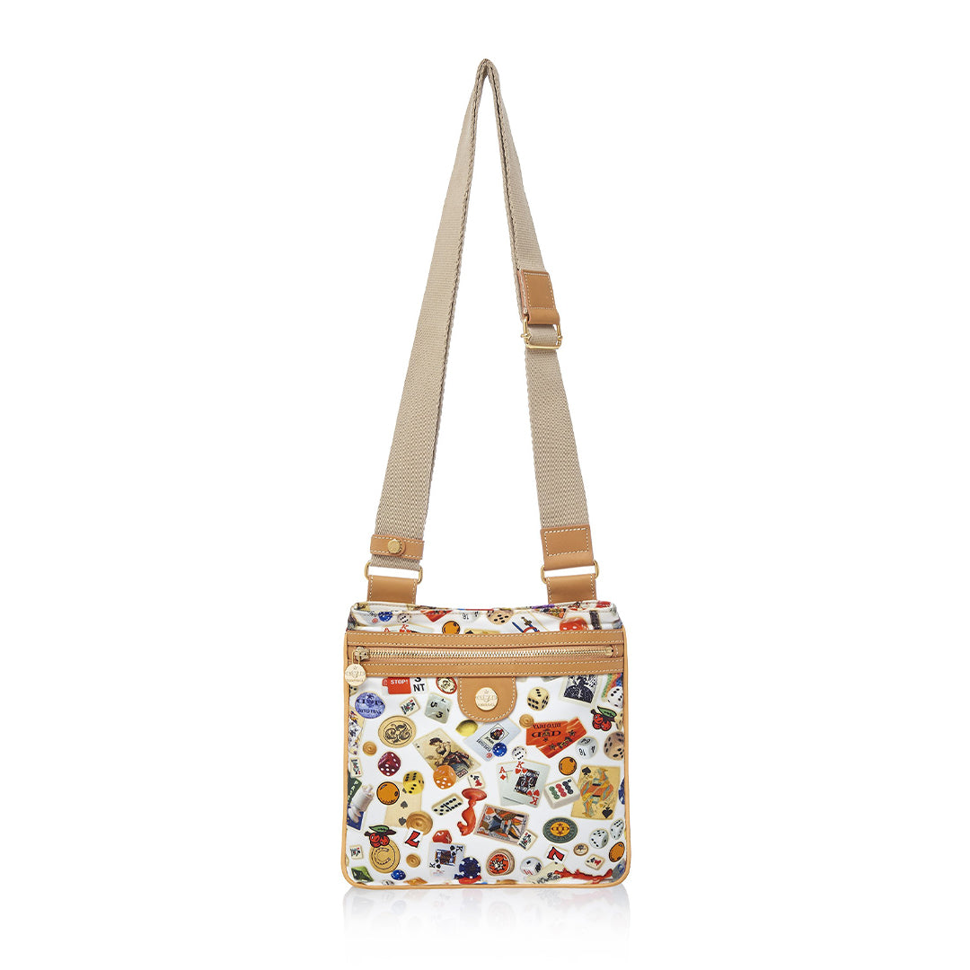 Madrid Tracolla piatta in Nylon con Disegno Gambling Multicolor Bianco/Biscotto