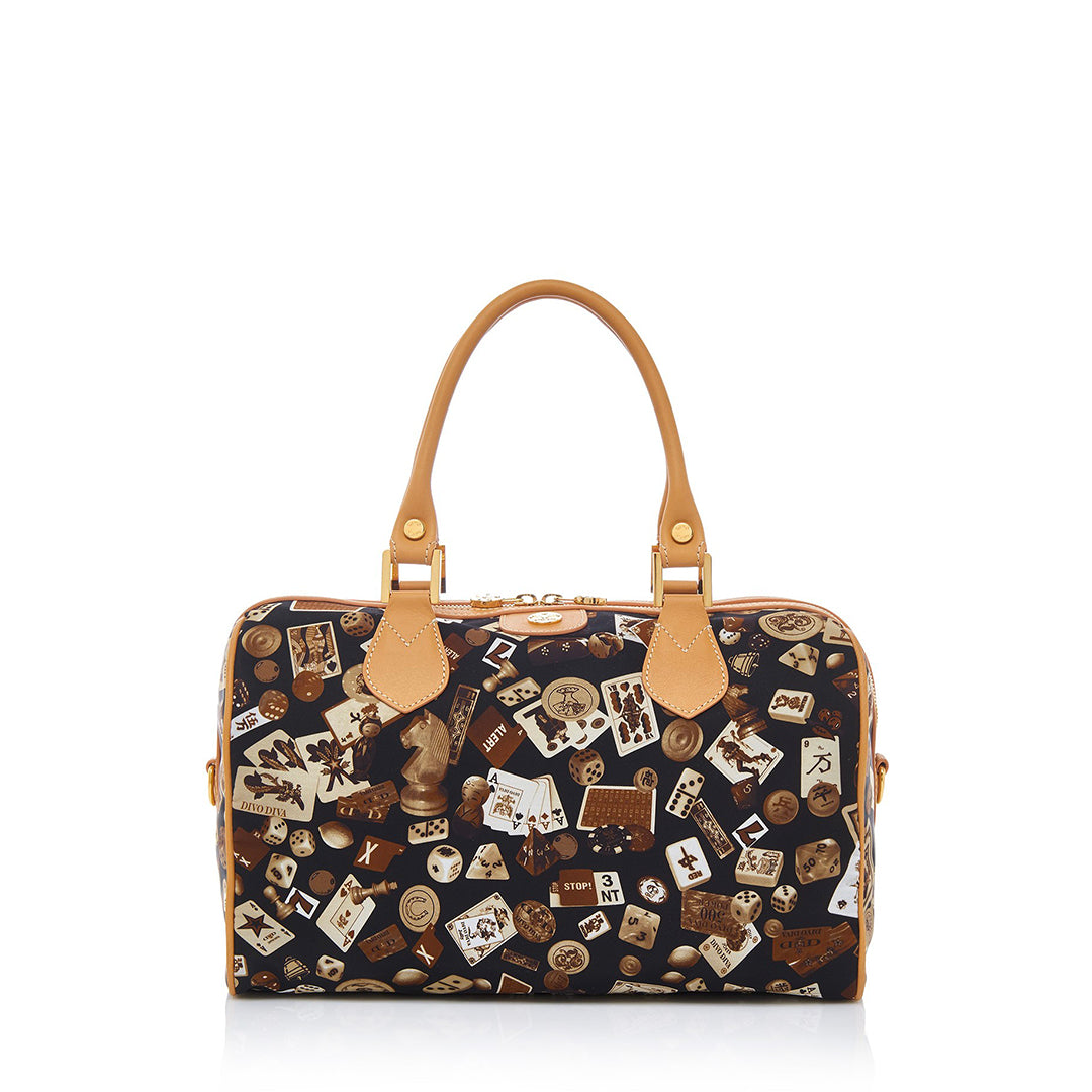 Montecarlo Borsa a mano con tracolla in Nylon con Disegno Gambling Multicolor Nero/Cacao